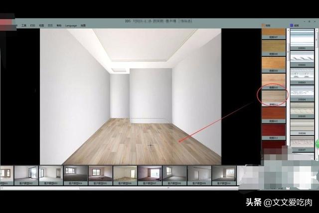 5、退出套型图编辑模式,可将软件右侧装饰素材直接用于房间模型中,依次设计吊顶、地板、墙板、衣柜、家具、灯饰等;